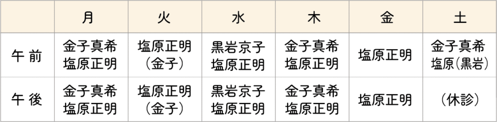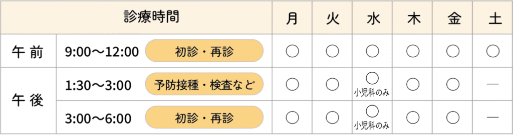 ●診療時間 (受付開始、受付終了はそれぞれの30分前です。)